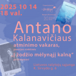 Kviečiame į poezijos ir muzikos renginį Į ŽODŽIO MĖLYNĄJĮ KALNĄ. Susitikime spalio 14 dieną ( antradienį) 18 val. Vilniuje, Rašytojų sąjungoje ( K. Sirvydo g. 6 ). Šis renginys skirtas paminėti poeto Antano Kalanavičiaus 80 metų jubiliejų. Aktorius Ignas Ciplijauskas skaito eilėraščius iš naujos poeto Antano Kalanavičiaus, knygos „Į Žodžio mėlynąjį kalną”, kartu atlieka ir labai originalias savo sukurtas muzikos kompozicijas. Aktorius Martynas Mockevičius skaito tekstus apie poeto gyvenimo patirtis – nuo rugiagėlės žiedo iki giesmės žvaigždynuose belaikės, savo kūrybos dainas atlieka multiinstrumentalistas, dzūkodelikos žanro pradininkas Rokas Kašėta. Renginyje dalyvaus ir kūrybinis knygos kolektyvas: Knygos sumanytoja ir sudarytoja, LŽS ir NŽKA narė Perpetua Dumšienė, knygos kaligrafinių iliustracijų autorius dailininkas Albertas Gurskas.
